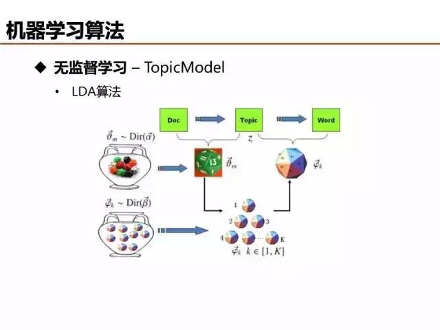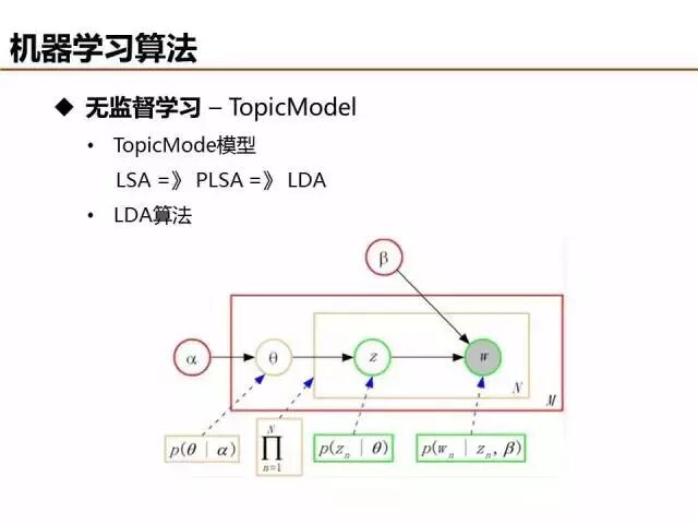 无监督学习算法很多,最近几年业界比较关注主题模型,LSA->PLSA->LDA为主题模型三个发展阶段的典型算法,它们主要是建模假设条件上存在差异。LSA假设文档只有一个主题,PLSA假设各个主题的概率分布不变(theta都是固定的),LDA假设每个文档和词的主题概率是可变的。