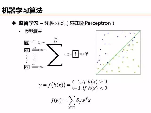 监督学习可分为分类和回归,感知器是最简单的线性分类器,现在实际应用比较少,但它是神经网络、深度学习的基本单元。