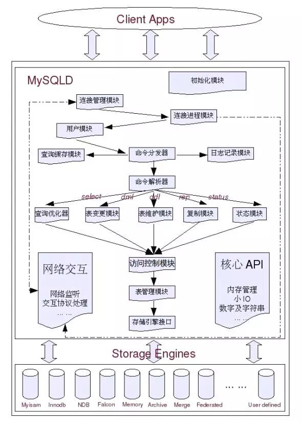 在MySQL数据库中,使用表级锁定的主要是MyISAM,Memory,CSV等一些非事务性存储引擎,而使用行级锁定的主要是Innodb存储引擎和NDBCluster存储引擎,页级锁定主要是BerkeleyDB存储引擎的锁定方式。