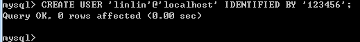 CREATE USER 'lin'@'localhost' IDENTIFIED BY '123456';