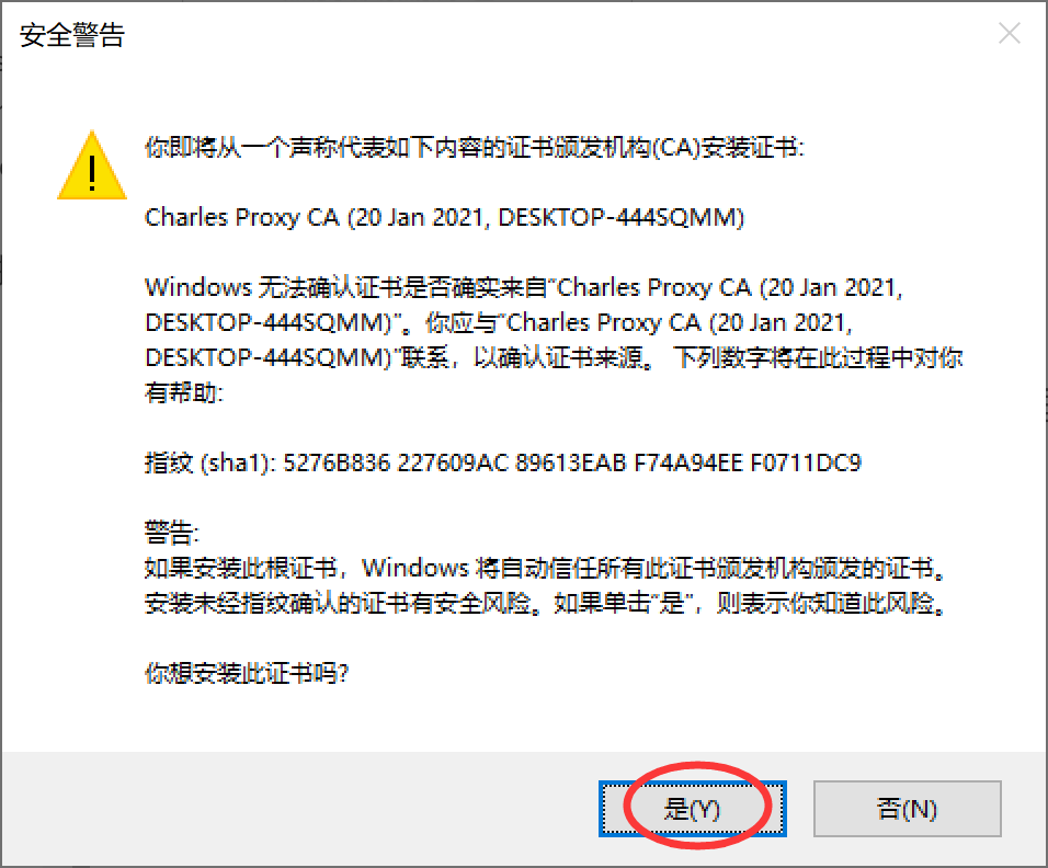 (5) 在弹出的安全警告框中单击 是 按钮,如图所示,即可完成 SSL 证书的安装。