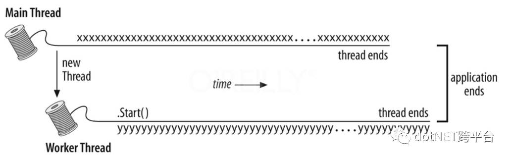 默认情况下,使用Thread.Start()方法创建的线程都是前台线程。前台线程能阻止应用程序的终结,只有所有的前台线程执行完毕,CLR才能关闭应用程序(即卸载承载的应用程序域)。前台线程也属于工作者线程。