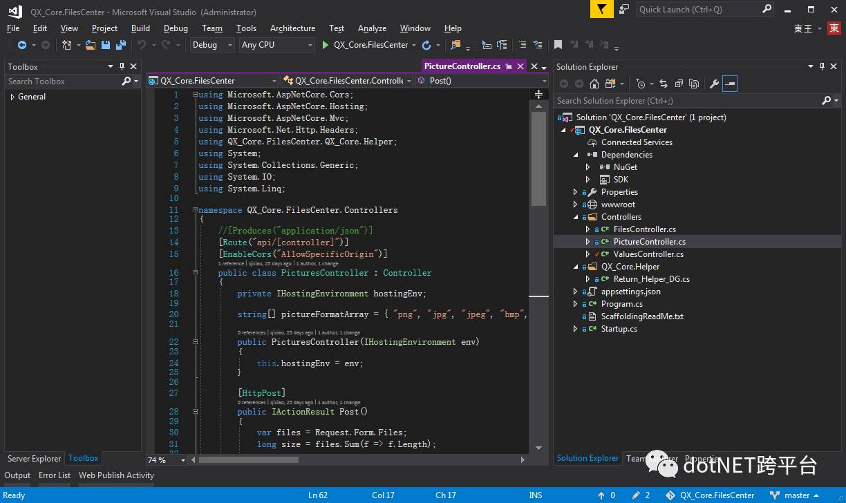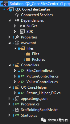 3、FilesController是我们的文件上传控制器接口,这里定义了对上传的文件的接收操作,并且在控制器上启用跨域配置