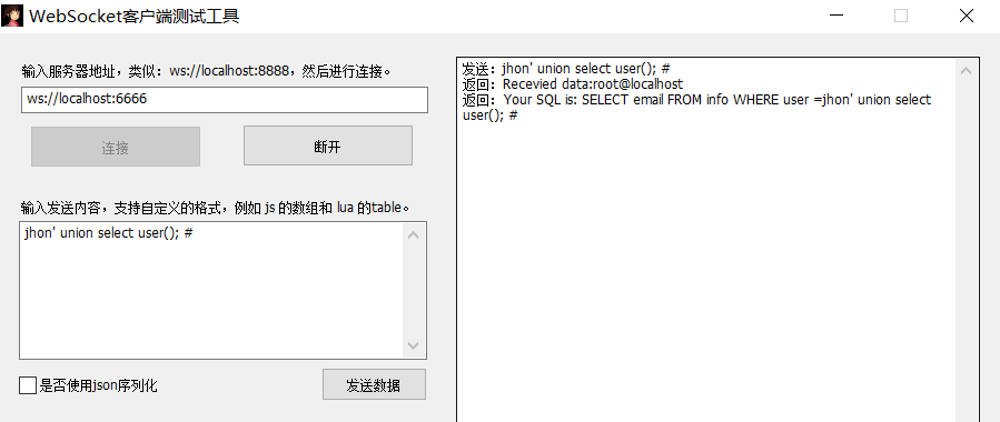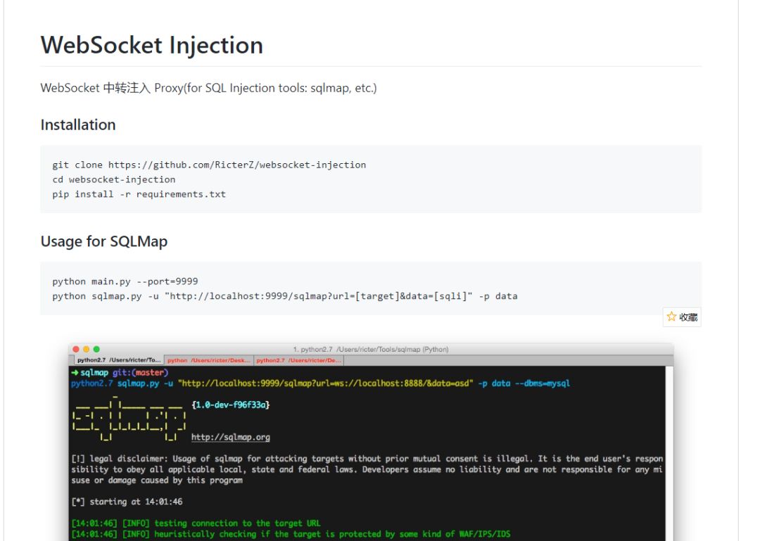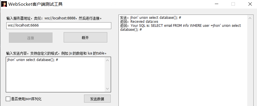 这里我说一下原理 即通过 websocket 客户端包装sqlmap