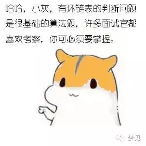 有一个单向链表,链表当中有可能出现“环”,就像下图这样。如何用程序判断出这个链表是有环链表?