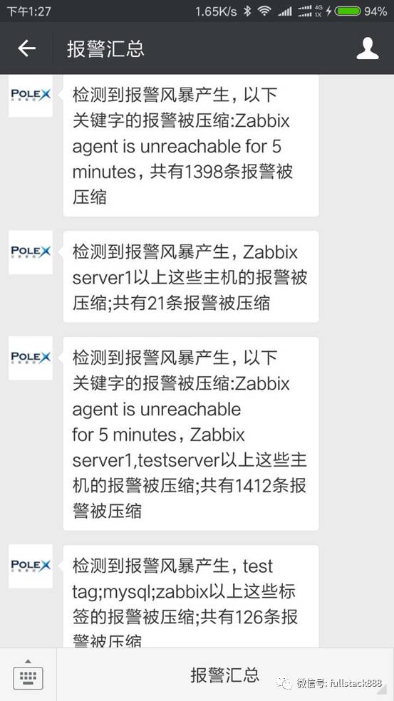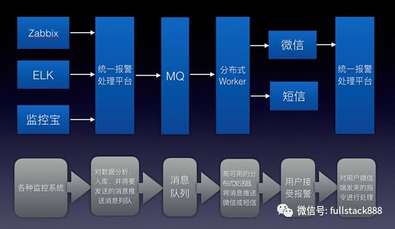 短信平台主要用来发送灾难级别的报警、微信API接口的报警,系统本身可用度的报警。