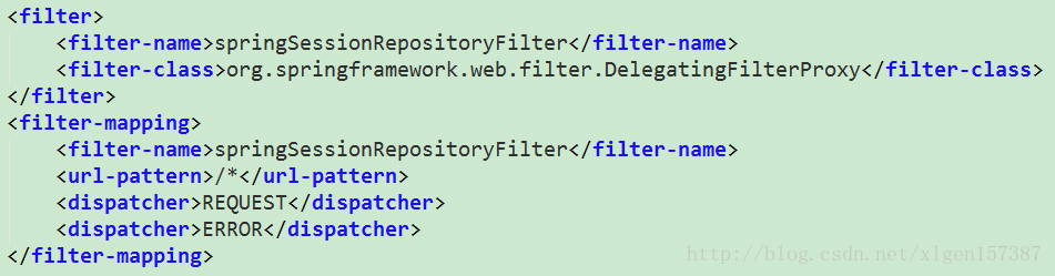 如果未指定init-param参数的话,DelegatingFilterProxy就会把filter-name作为要查找的Bean对象,这也是DelegatingFilterProxy类的作用。可以看出每一个请求都会经过该filter,经过该filter的请求也会相应的经过springSessionRepositoryFilter这个过滤器,那么我们就接着看一下springSessionRepositoryFilter这个过滤器。