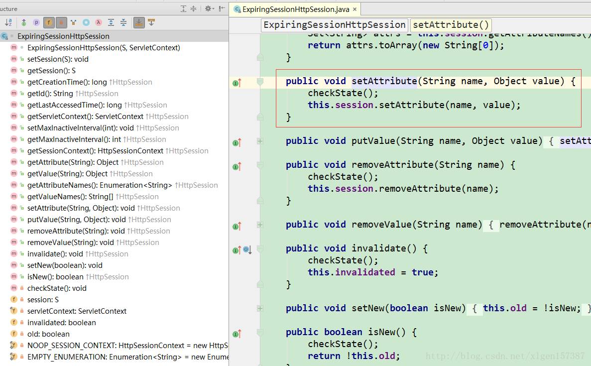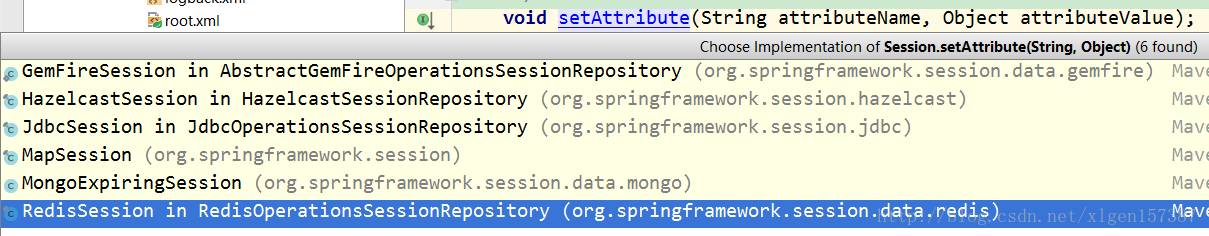 this.session.setAttribute(name, value) 中session是Session接口的定义,具体实现有: