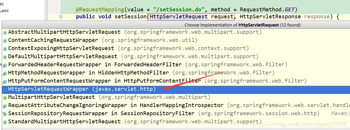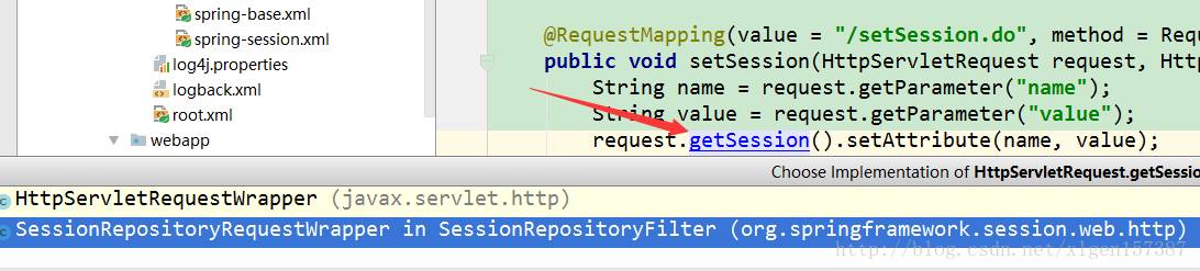 我们通过快捷键查看request.getSession() 的具体实现,就可以看出已经有了SessionRepositoryRequestWrapper 重写的方法。
