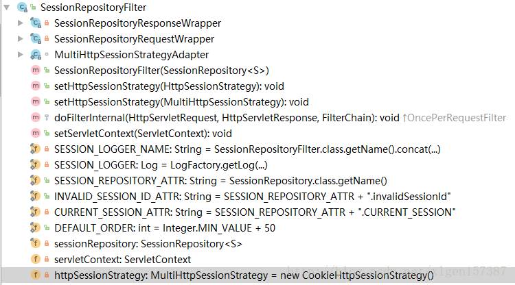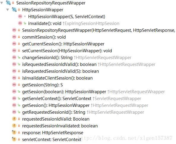 (7)其中SessionRepositoryResponseWrapper、SessionRepositoryRequestWrapper、HttpSessionWrapper为内部类,这个也是很关键的。例如SessionRepositoryRequestWrapper类: