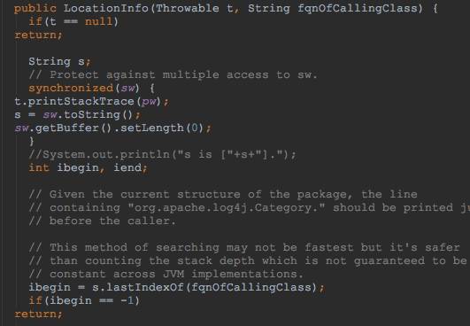 注:Log4j源码里用了synchronized锁,然后又通过打印堆栈来获取行号,在高并发下可能就会出现上面的情况。