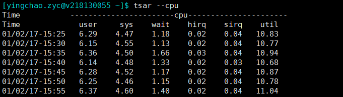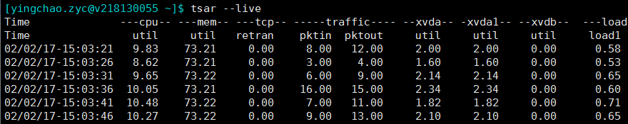 tsar --live ##可以查看实时指标,默认五秒一刷