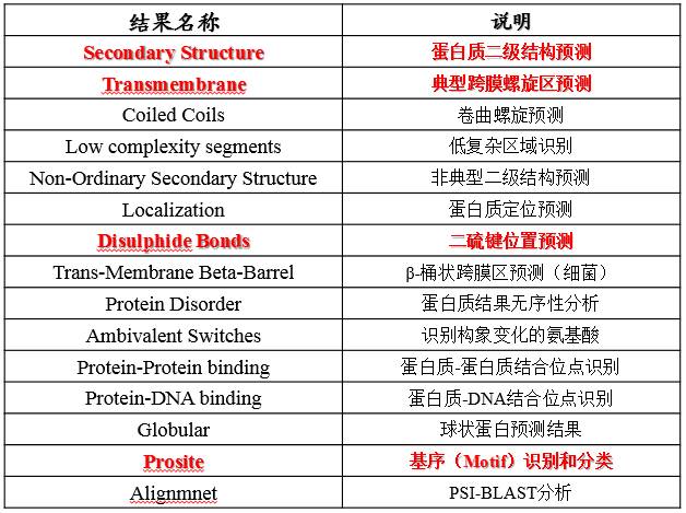 可以获得功能预测、二级结构、基序、二硫键结构、结构域等许多蛋白质序列的结构信息。
