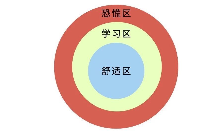 而最外一圈则是“恐慌区”,它代表的是超出你能力范围太多的事务或知识,心理感觉会严重不适,可能导致崩溃以致放弃学习。