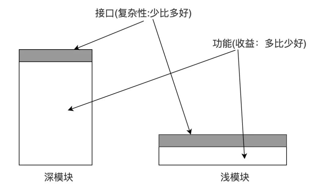 深模块(Deep Module)指的是拥有强大功能和简单接口的模块。深模块是抽象的最佳实践,通过排除模块内部不重要的信息,让用户更容易理解和使用。