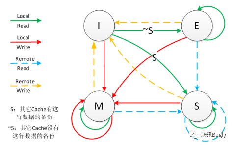 S: shared 共享,数据有效,cache与内存一致,多核同时存在