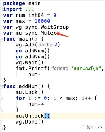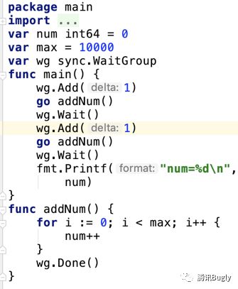 代码中共享变量num是一个简单的计数器,main主线程启动了两个协程,分别循环一万次对num进行递增操作。正常情况下,预期的结果应该是1w+1w=2w,但是,在并发执行的情况下,最终的结果只有10891,离2w差的好多。