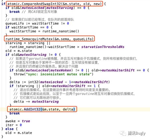1 通过CAS操作来竞争锁的状态 &m.state;