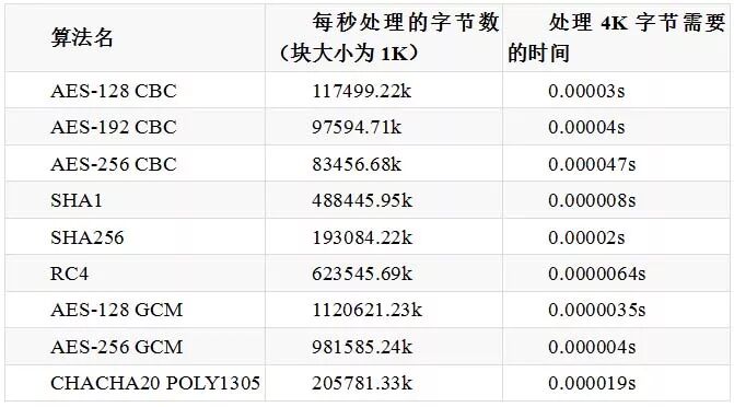相比非对称密钥交换算法来讲,对称加密算法的性能非常卓越(好 1 到 2 个数量级),但是如果应用层传输内容较大的话,特别是移动端的 CPU 计算能力较弱,对称加密算法对性能的影响也不容忽视。