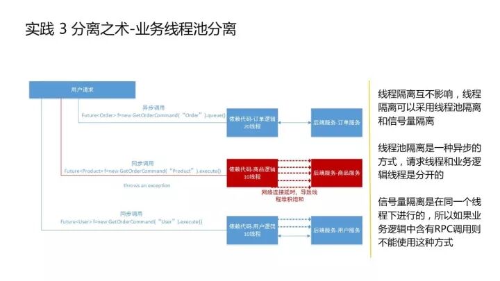 第二个是业务线程池分离,就是通过一个线程的隔离技术,把不同的接口或不同类型的接口进行隔离。