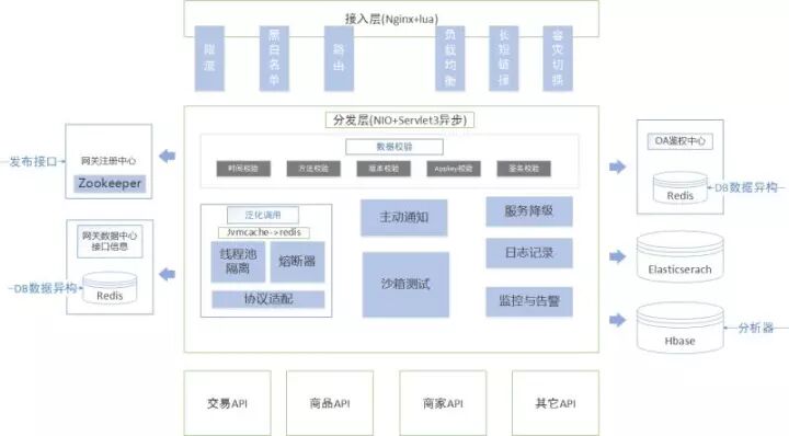 OA 鉴权中心,这一块主要是做鉴权用的,像数据校验层的很多签名的校验等安全校验都是在这一层统一做的。