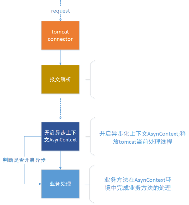 业务方法开启异步化上下文 AsynContext。