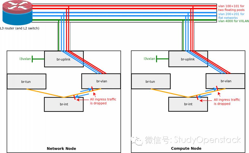 br-int、br-vlan和br-tun的流表配置信息可以参考原文,不再详细描述