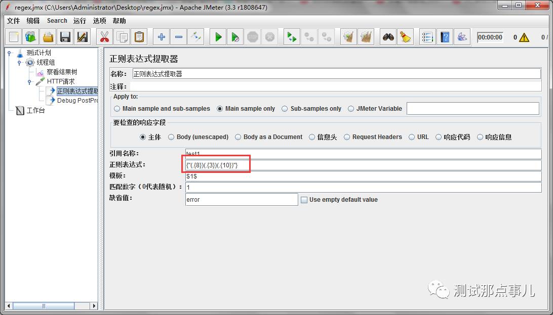 名称:正则表达式提取器的名称,自定义,一般用不到