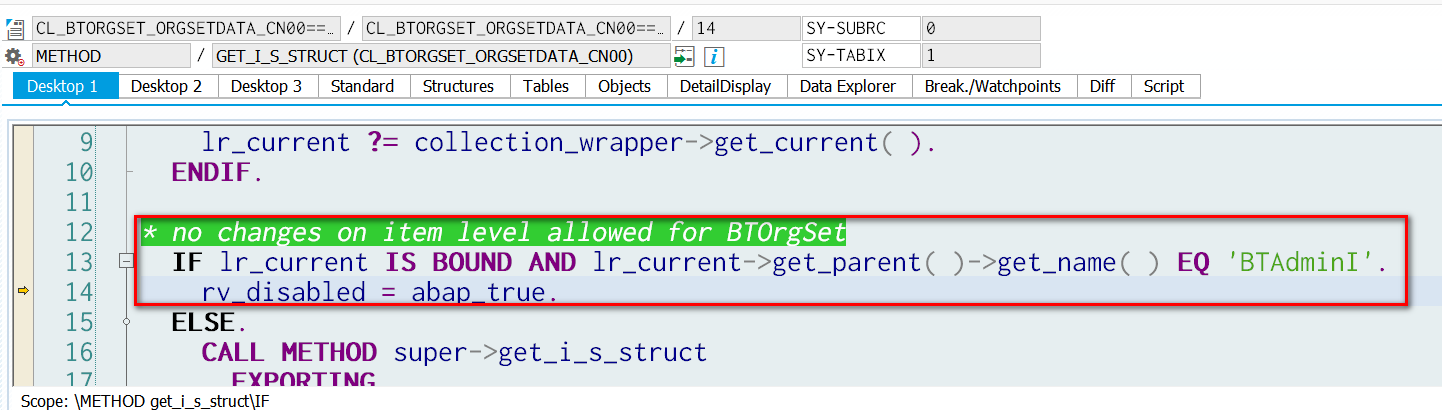 The comment in line 13 clearly shows that the organizational management data in item level should always be read only.