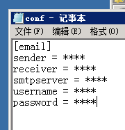 在这里可以设置邮件发送人、接收者、smtp服务器地址以及用户名密码。需要根据实际情况进行改变。