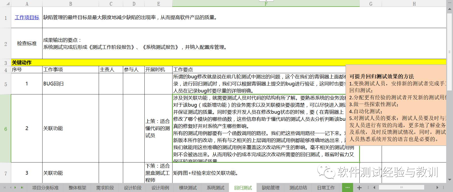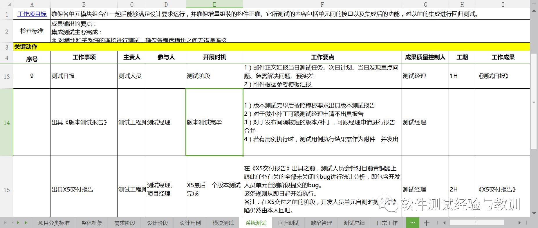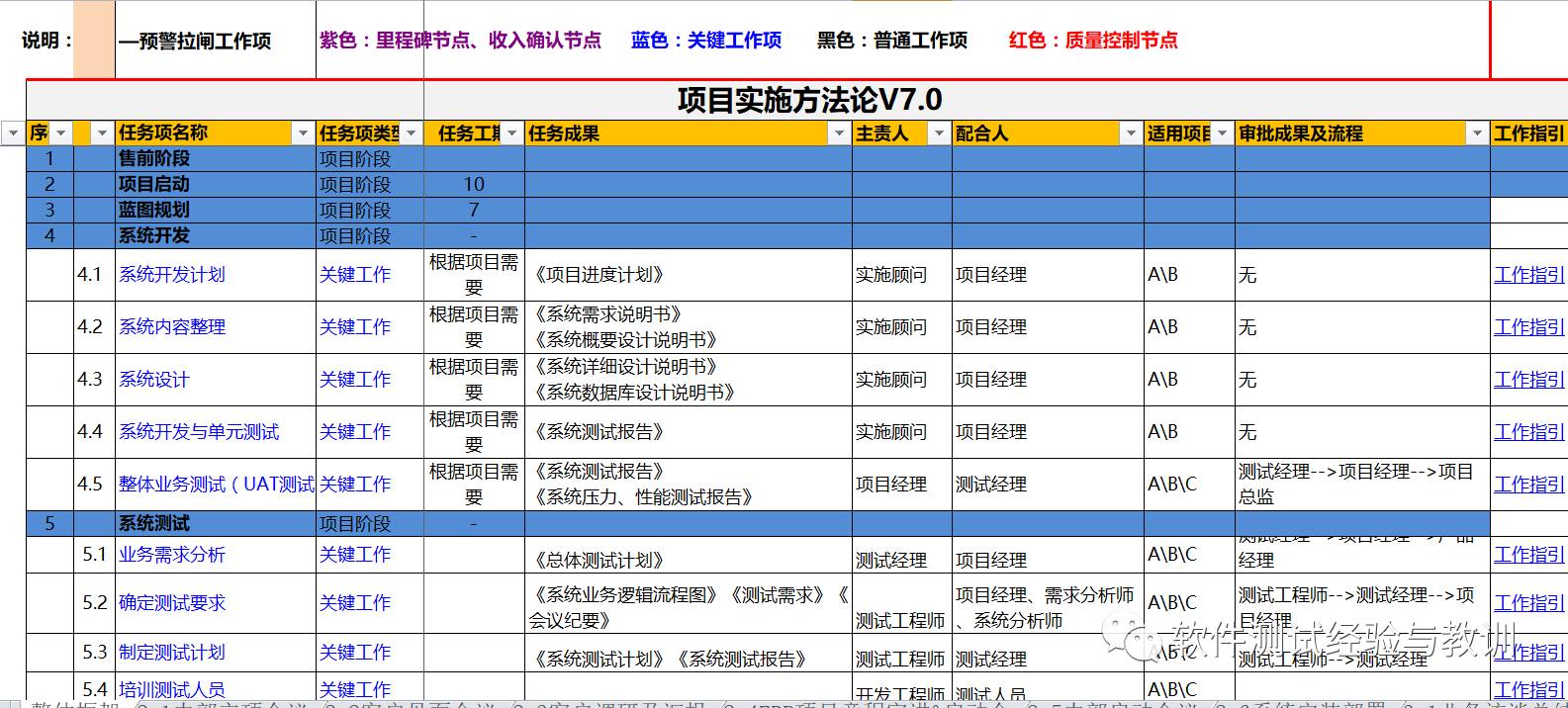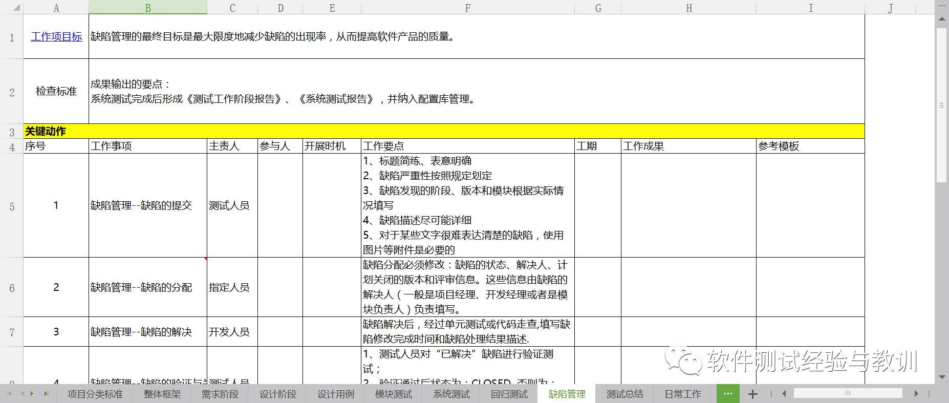 也是以前做质量管理时整理的表。虽然最后因为各种各样的原因没有延续下去,不过最初的想法还是好的。这个表当初的目的也是希望提高项目管理成熟度,希望项目里的每个人在做事情时有一个更清晰的指导。