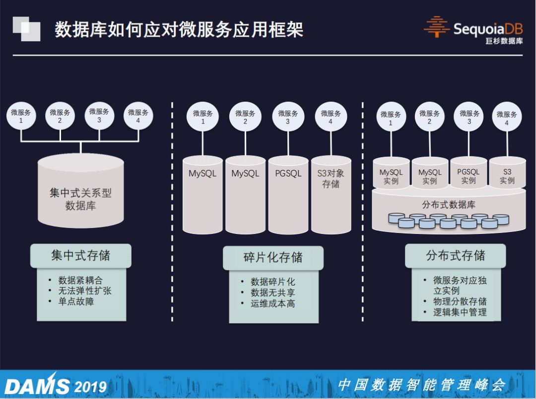 而如果每个微服务使用独立的数据库进行存放,整个企业IT的数据架构将会变得支离破碎。数据库的数量从过去的几百被拆分为上万个数据库,整个运维团队的管理成本与数据库采购成本面临几何级数的提升。