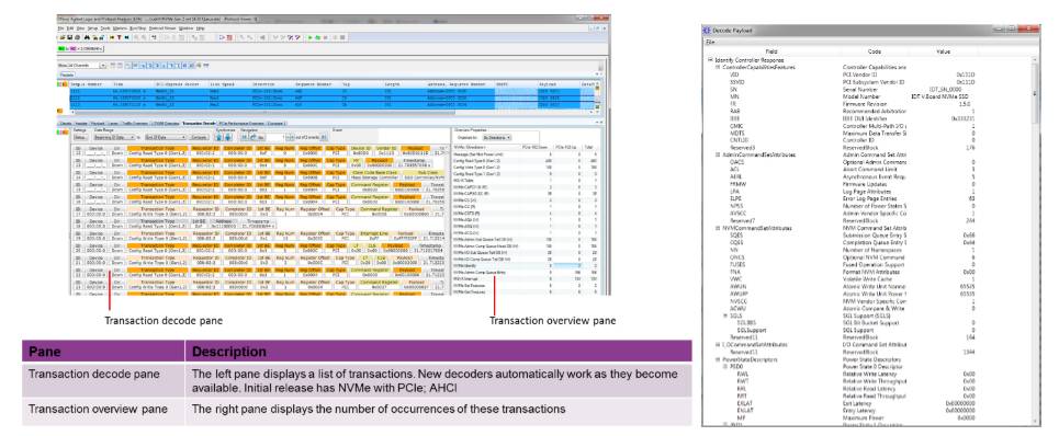 U4301B协议分析仪平台,支持PCIe3.0协议解析,支持LTSSM状态机分析,解析EQ链路协商的过程;并且支持NVMe,AHCI等事物层的解码;统计PCIe总线的性能分析。这个分析平台可以支持标准PCIe x 1到 x 16插槽,也支持焊接方式,以及M.2和U.2接口卡的探测。