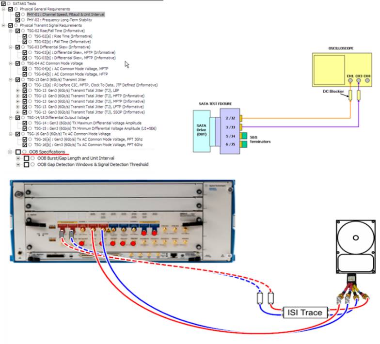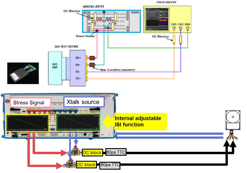 M8020A可以配置两通道码型发生功能,在Tx测试时可以使用双通道合路产生OOB信号, Rx测试内置ISI可以模拟规范要求的外部ISI损耗要求,并且利用第二通道产生SAS要求的串扰信号。