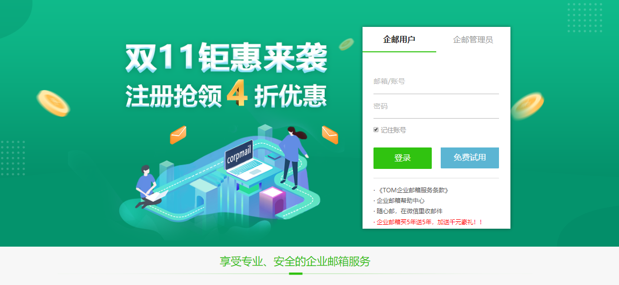 很多企业邮箱用户喜欢用客户端登录,但使用企业邮箱没那么熟练,所以在设置客户端时会有一些困难,而且企业邮箱格式不像免费邮箱或VIP邮箱那样有固定的域名,客户端无法自动识别出收发服务器地址,下面小编就来教大家如何把公司企业邮箱登录到客户端上(流程以TOM企业邮箱为例)。