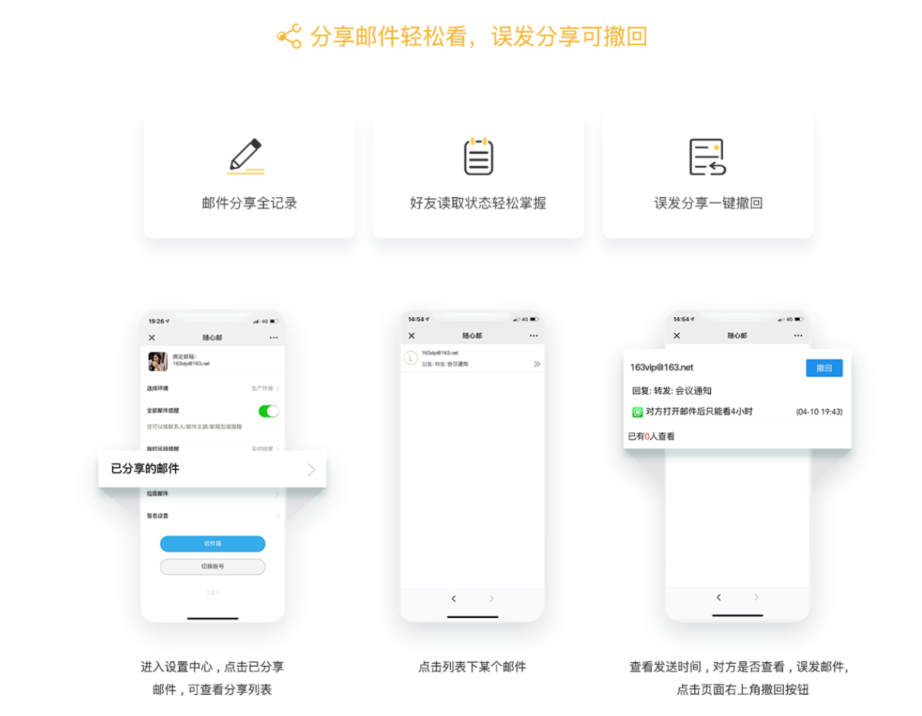 使用随心邮可以给微信好友分享邮件,并支持在分享之前设置阅读时间,在好友阅读后时间一到就会自动失效,保护了邮件内容的私密性。