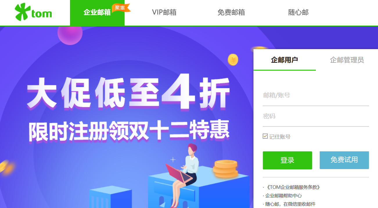 双12期间企业邮箱新老用户均可享受4折优惠,用户享受与代理商一样的价格,没有中间商赚差价,超低折扣,超高性价比。