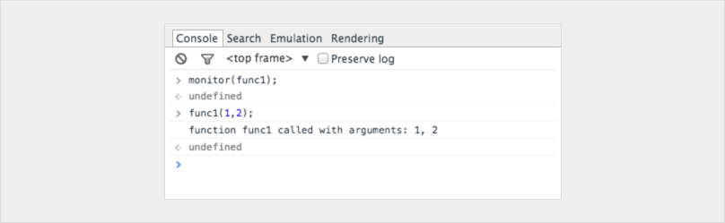 在 Chrome 的 console 面板中,你可以监视一个特定的函数。每次该函数被调用,它将连同传入的参数一起打印出来。