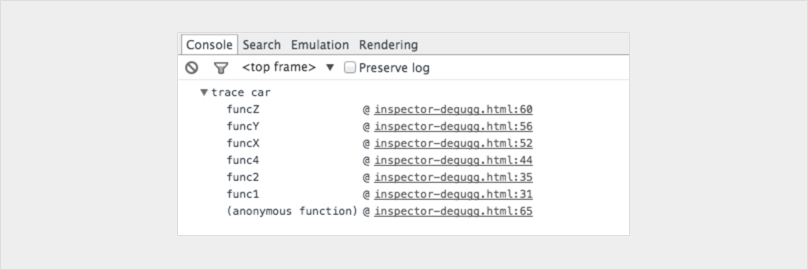 JavaScript 不是一个非常结构化的语言,所以有时很难搞清楚 发生了什么 和 什么时候发生的 。因此 console.trace (console 面板中只需要 trace)就派上用场了。