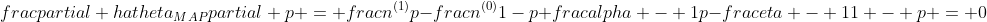 我们取,这样先验分布在0.5处取得最大值,现在我们来求解MAP估计函数的极值点,同样对p求导数我们有