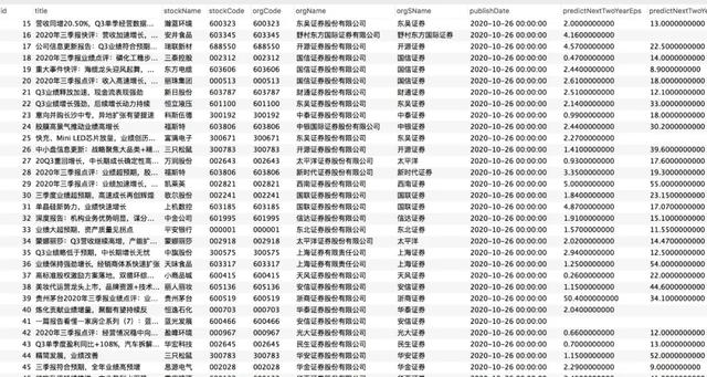 attrs = ['title', 'stockName', 'stockCode', 'orgCode', 'orgName', 'orgSName', 'publishDate', 'predictNextTwoYearEps',