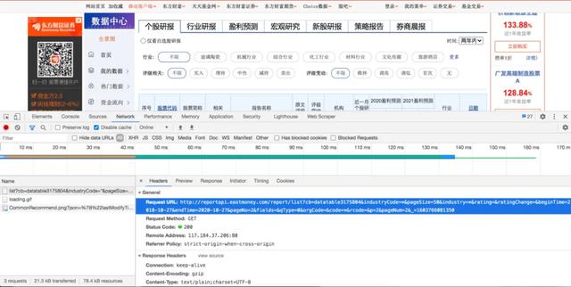 点击进去,就是我们的个股研报页面了,这就是我们获取研报的目标页面: