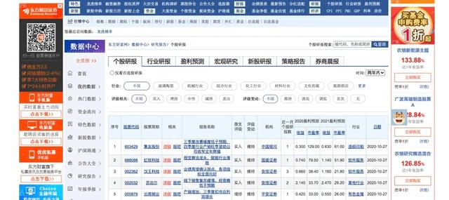 在这个页面我们可以看到最长两年内的所有个股研报,我们可以看到研报、相关个股、股票评级、股票未来盈利预测等信息,这些信息是我们选股的关键,是我们需要获取的信息。