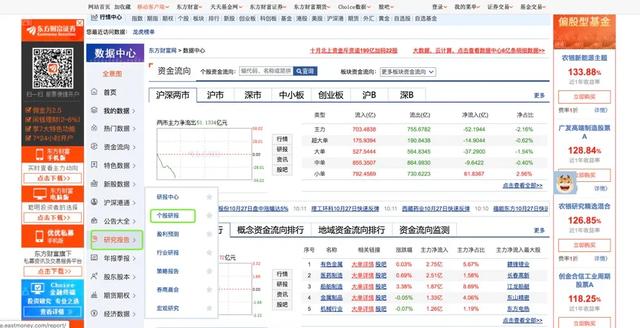 点击进去,就到了股票数据的首页了,然后我们找到左侧的菜单,从中找到“研究报告”,选择研究报告的子菜单“个股研报”: