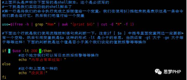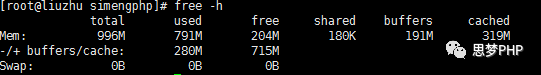 首先第一个我们来写监控内存的脚本,我们还要使用一条命令:free -h