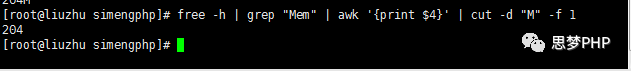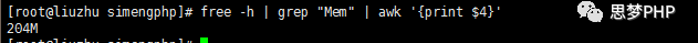 这样我们就看到了第一行内存使用的状况了:那我们想要的是free这列值来进行监控,那么我们就一步一步去获取这行的值