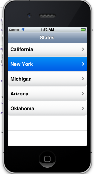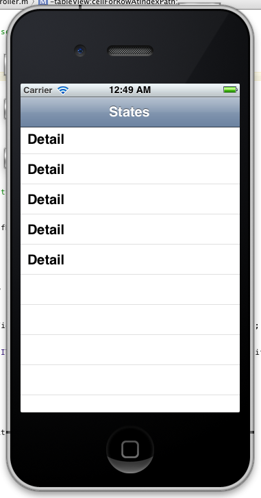 After you implement those methods it should look like this. I changed the table to states because I wanted to later show how to alphabetize a list of states.