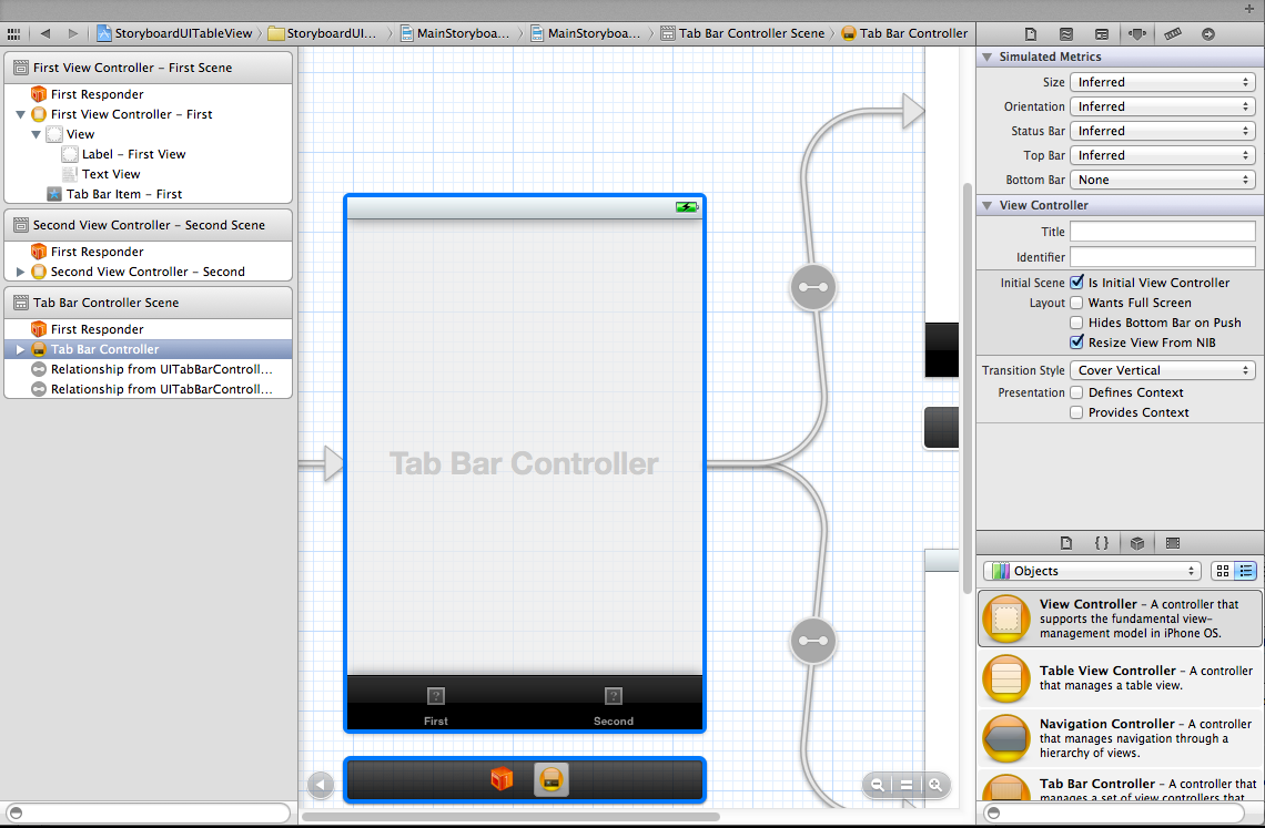 1. Create a new Tabbed Application called StoryboardUITableView.