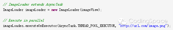 // ImageLoader extends AsyncTask ImageLoader imageLoader = new ImageLoader(imageView); // Execute in parallel imageLoader.executeOnExecutor(AsyncTask.THREAD_POOL_EXECUTOR, "http://url.com/image.png");