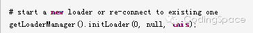 # start a new loader or re-connect to existing one getLoaderManager().initLoader(0, null, this);